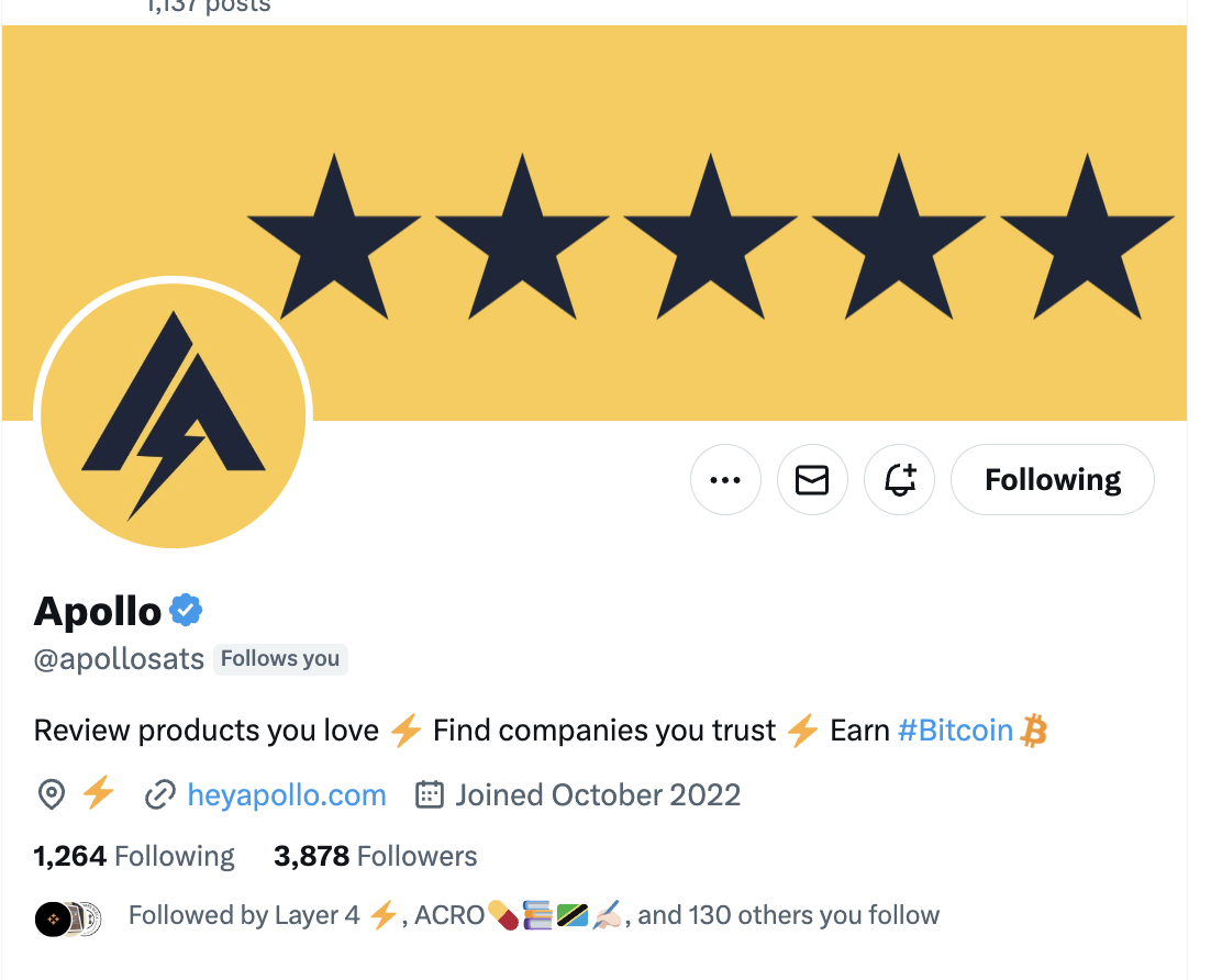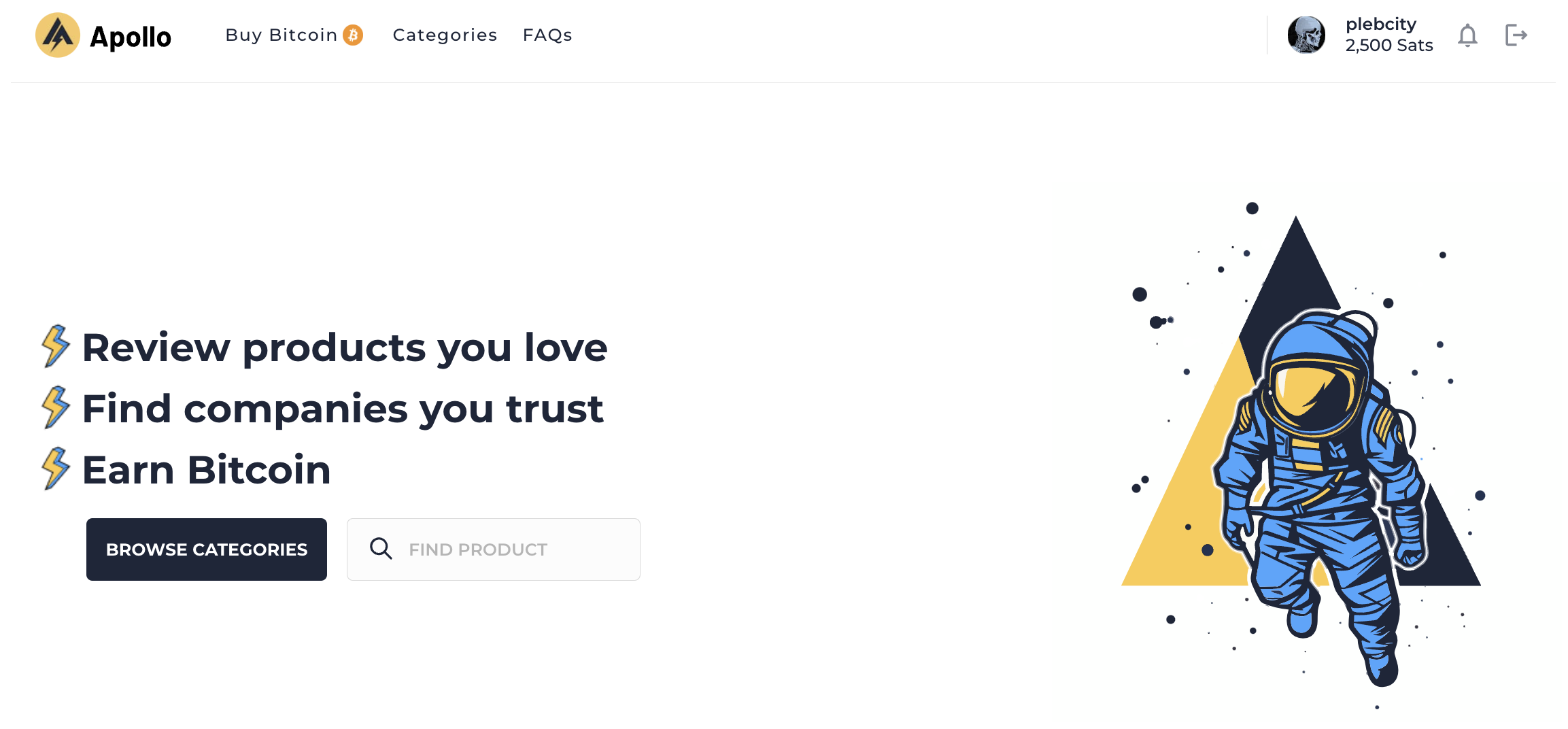 Apollo offers a new way for Bitcoiners to explore products and services in the space reviewed and ranked by actual Bitcoiners.